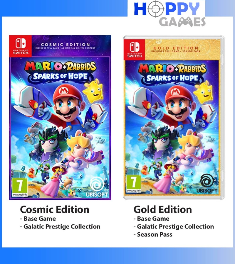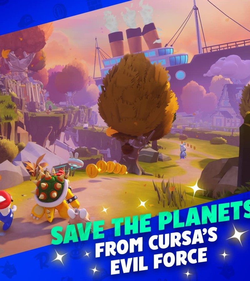 Team up with Mario, Luigi, Princess Peach, Rabbid Peach, Rabbid Luigi, and their friends on a galactic journey to defeat a malevolent entity and save your Spark companions. Explore planets throughout the galaxy as you uncover mysterious secrets and compelling quests!